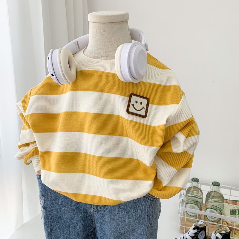 جديد 2024 سترة خريفية للأولاد ملابس أطفال خريفية للأطفال على الطراز الغربي مخطط بلوفر بياقة دائرية