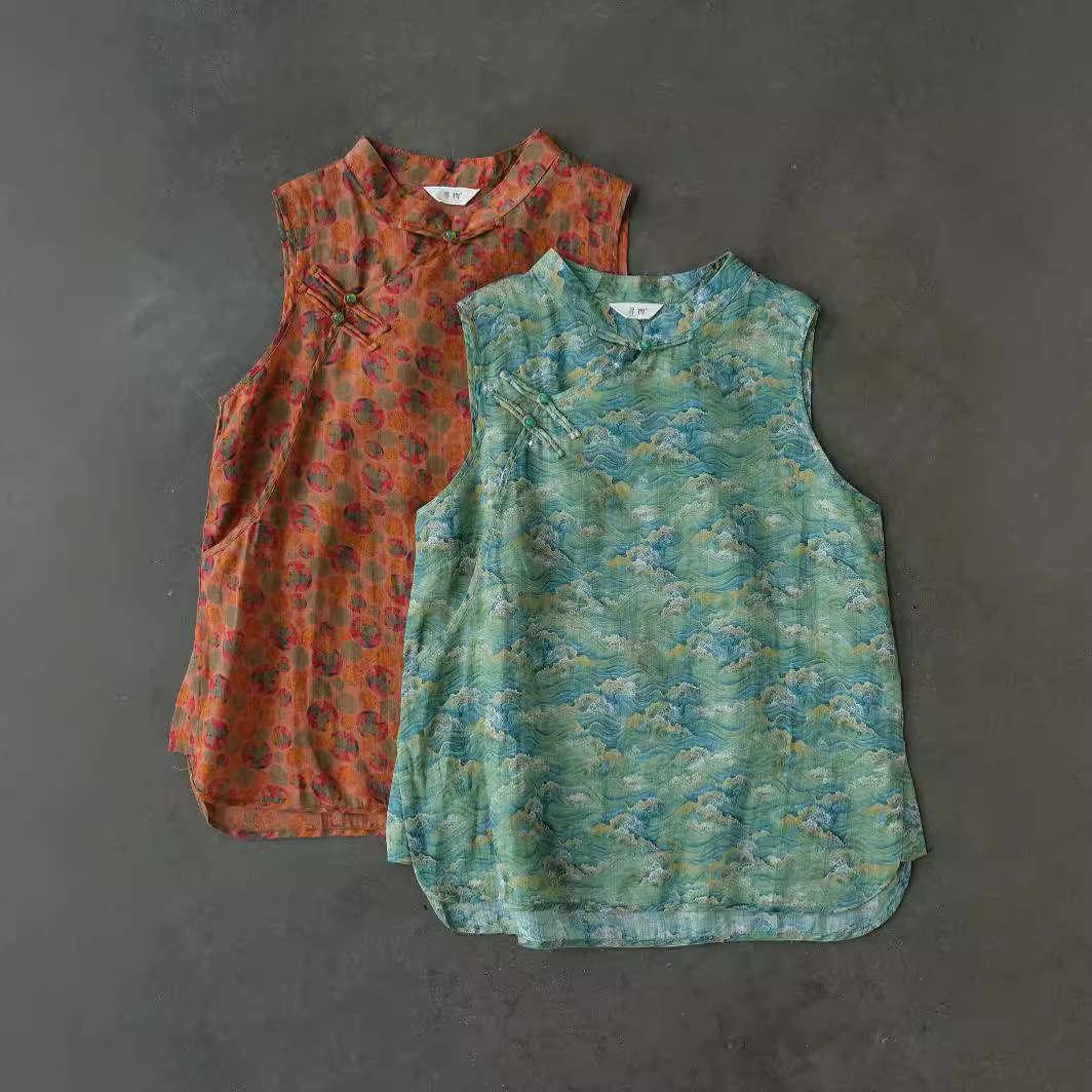 الأصلي النمط الوطني النمط الصيني المائل طباعة رامي سترة الرجعية العرقية زن حبة مشبك قاعدة سترة M24137
