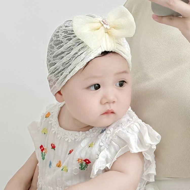 قبعة أطفال صيفية رقيقة من الدانتيل واقية من الشمس قبعة هندية لحديثي الولادة باب مدخنة لحماية قبعة الأميرة الكورية اليافوخ