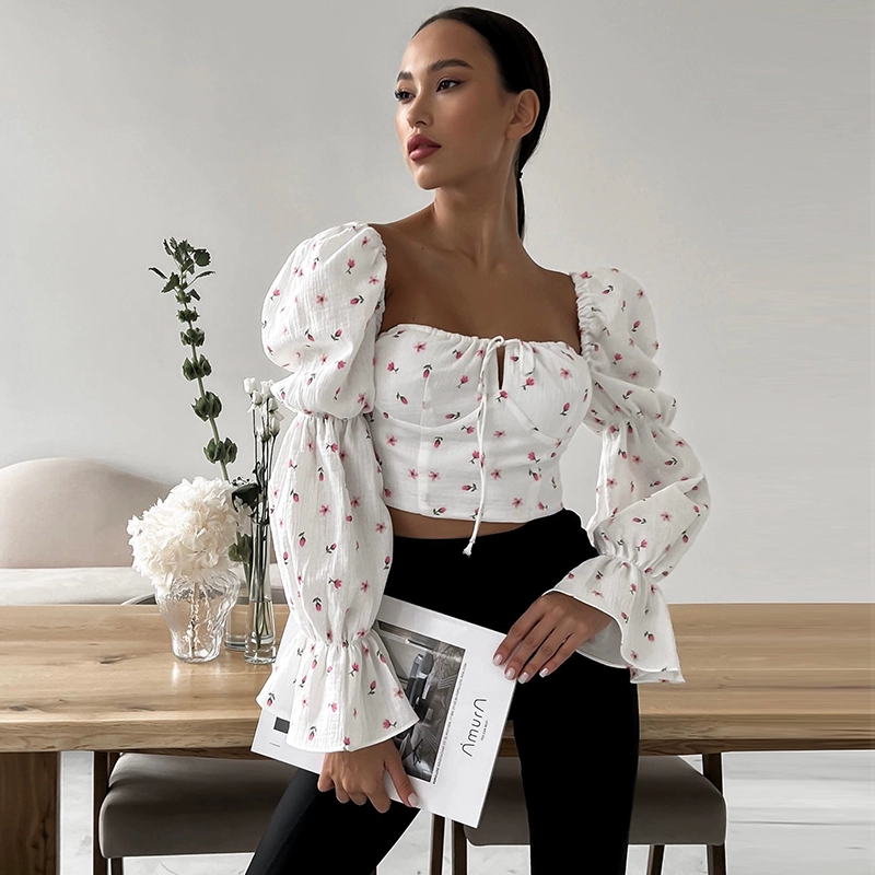 قميص نسائي ذو خصر ضيق وملمس داكن على طراز الكلية لعام 2024 أوائل الخريف بتصميم جديد أنيق وفريد من نوعه