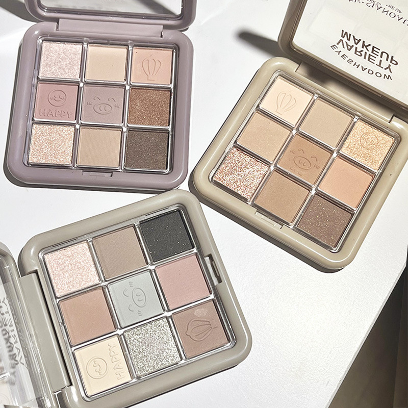 لوحة ظلال العيون الربيعية ذات تسعة ألوان، تسع شبكة لؤلؤية غير لامعة، فلاش ناعم، 9 ألوان، لوحة طين القلقاس، لوحة برتقالية بنية، منطقة كبيرة للنساء