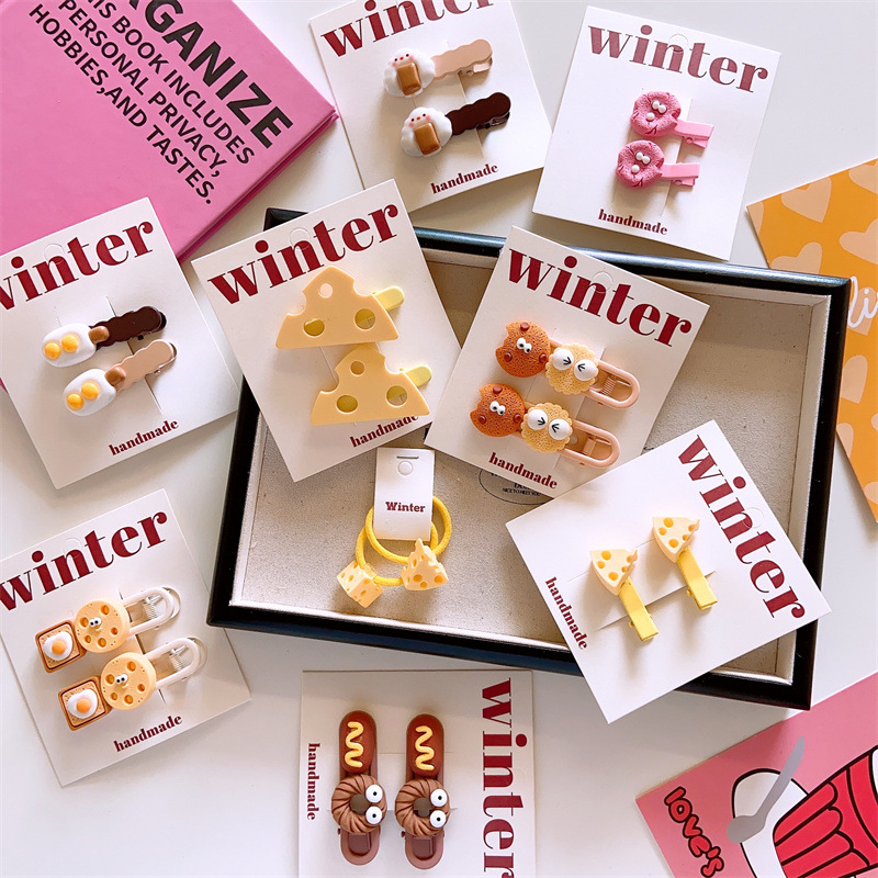 الكورية نمط Dongdaemun الأطفال الاصطناعي البسكويت دبوس الفتاة الوالدين والطفل كوكي الجبن مبتسم إكسسوارات الشعر زوج الجانب