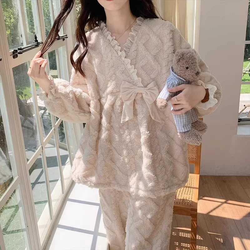 بيجامة للنساء للخريف والشتاء ملابس منزلية مخملية سميكة من المخمل المرجاني 2024 بدلة جديدة على طراز الأميرة من الفلانيل