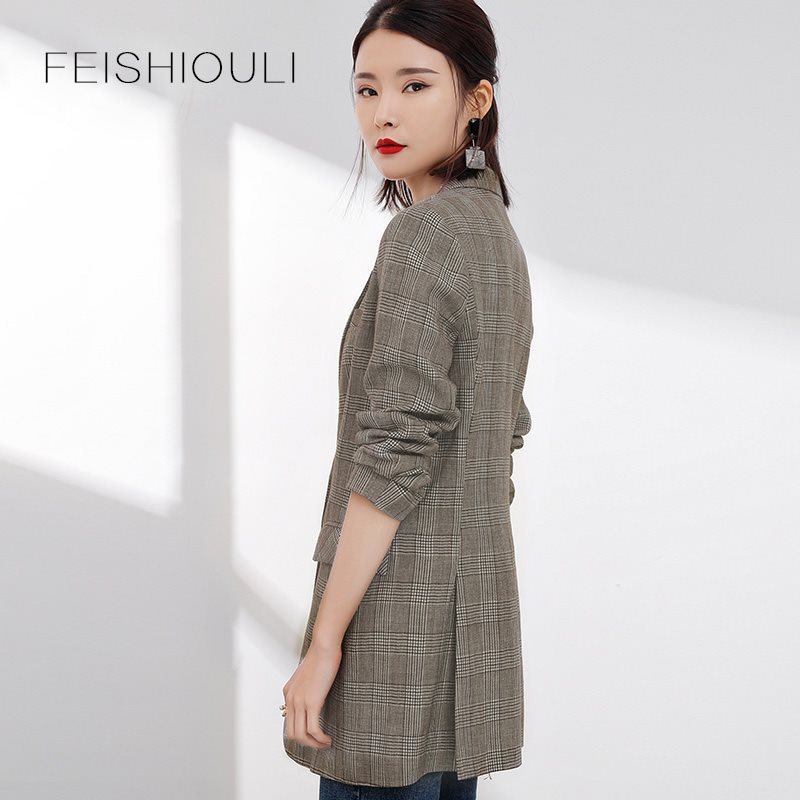 القطن والكتان البدلة سترة المرأة الربيع والخريف جديد ريترو منقوشة حجم كبير منتصف طول عادية الكتان بدلة صغيرة التخسيس