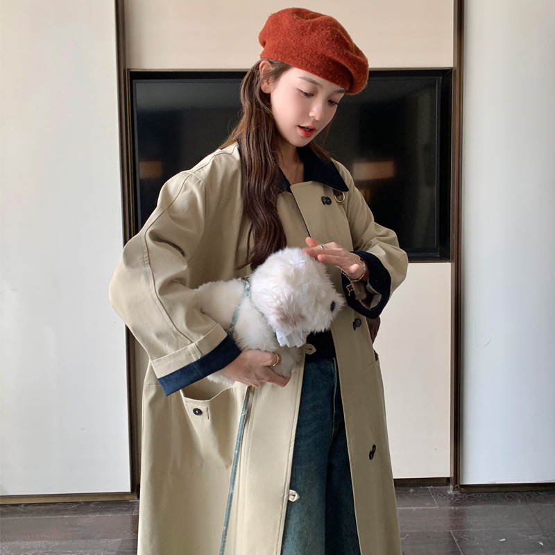 سترة واقية جديدة متوسطة الطول لربيع وخريف 2024 للسيدات على الطراز الكوري فضفاضة للتنحيف بتصميم كلاسيكي مناسب لطية صدر السترة