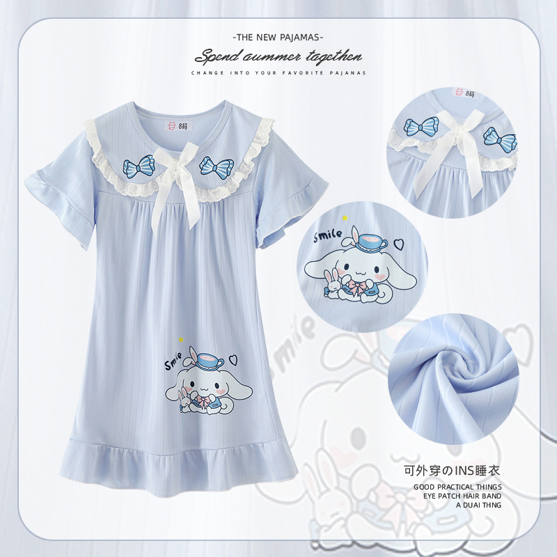 جنوب شرق آسيا التجارة الخارجية الفتاة ثوب النوم رقيقة الصيف الفتاة دمية طوق الأميرة نمط كبير للأطفال فستان المنزل ثوب النوم
