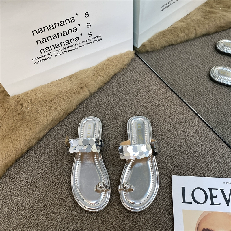 نعال مسطحة مطرزة للنساء لارتدائها 2024 صنادل صيفية جديدة للشاطئ نعال رائعة رائعة