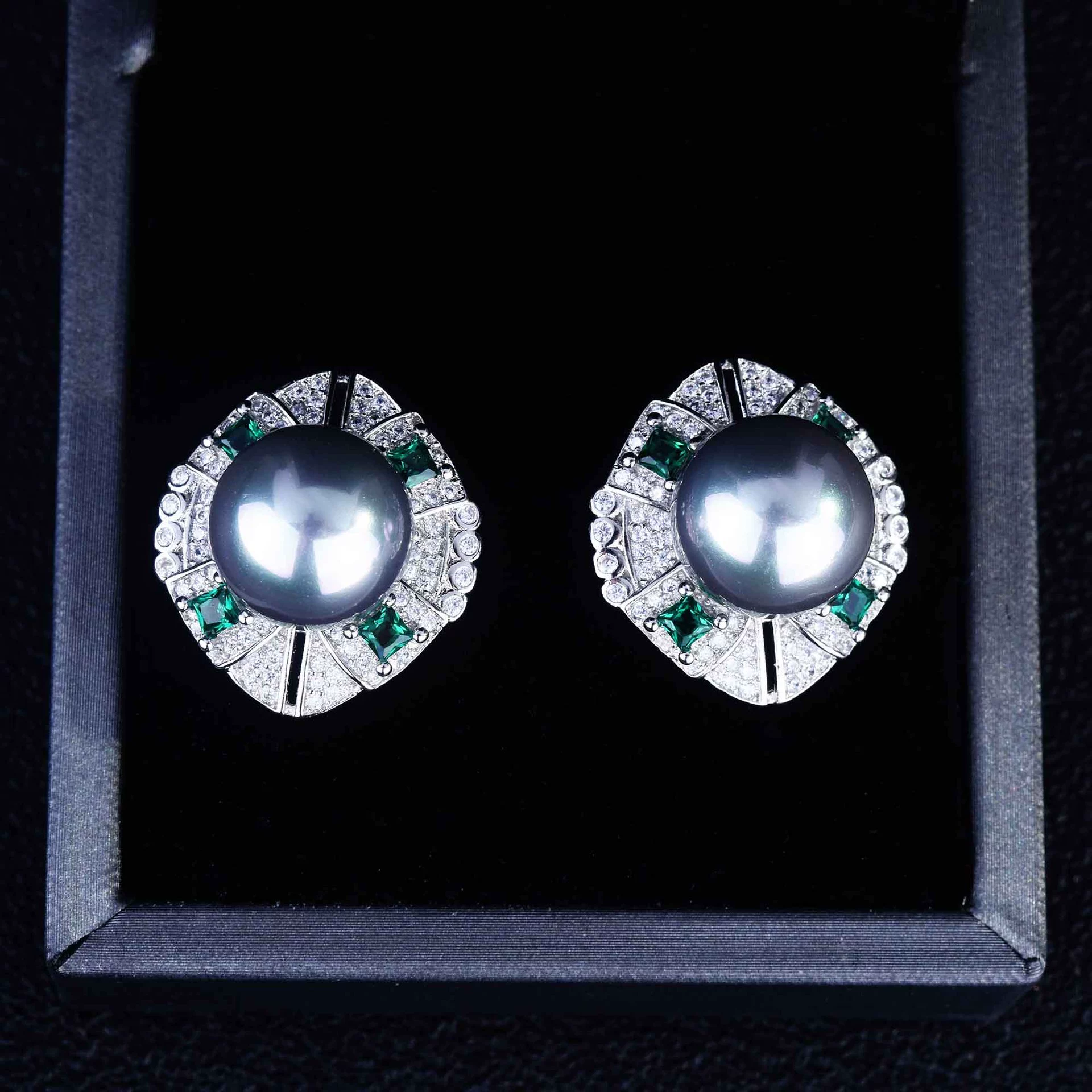 الفاخرة الفاخرة الشابة الأوروبية والأمريكية تاهيتي الأقراط السوداء