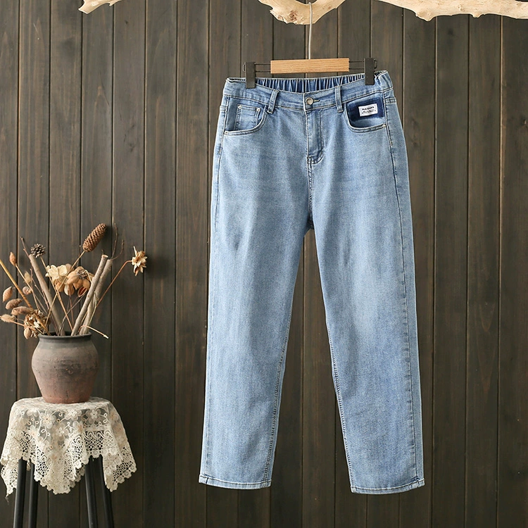 200 Catties مستقيم عالي الخصر جينز بطول تسع نقاط فاتح