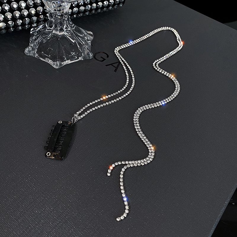 دبوس شعر الشرابة ، متطور ، أنيق ، مجدل وسلسلة ماس سباركلي