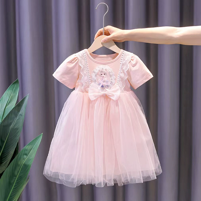 ESHAXIA Summer Cotton Princess Skirt Ice and Snow Small Sleeve Short