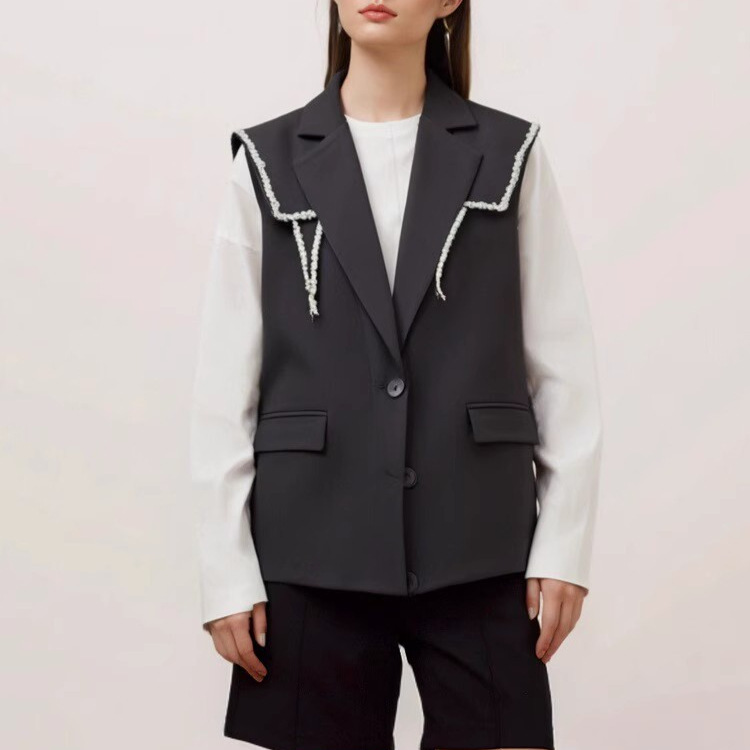 الكورية الرجعية أكمام دعوى سترة المرأة الخريف جديد الصناعة الثقيلة تصميم الماس شعور أنيق فضفاض سترة الكتف