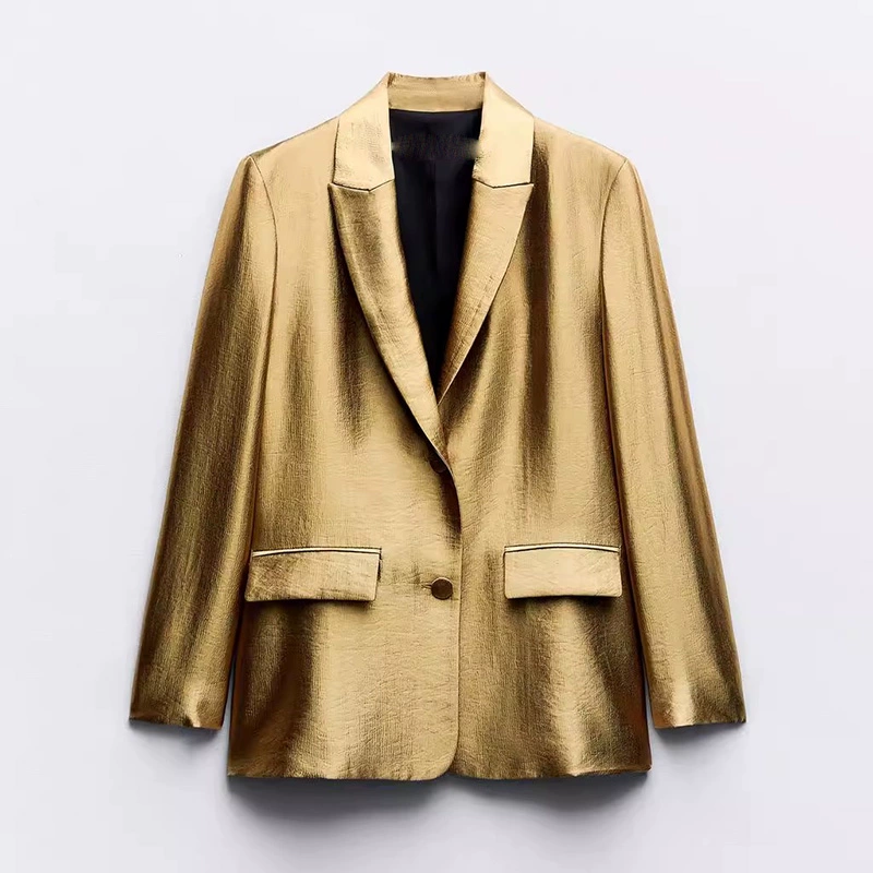سترة بدلة ربيعية فضفاضة باللون الذهبي مع وسادات كتف