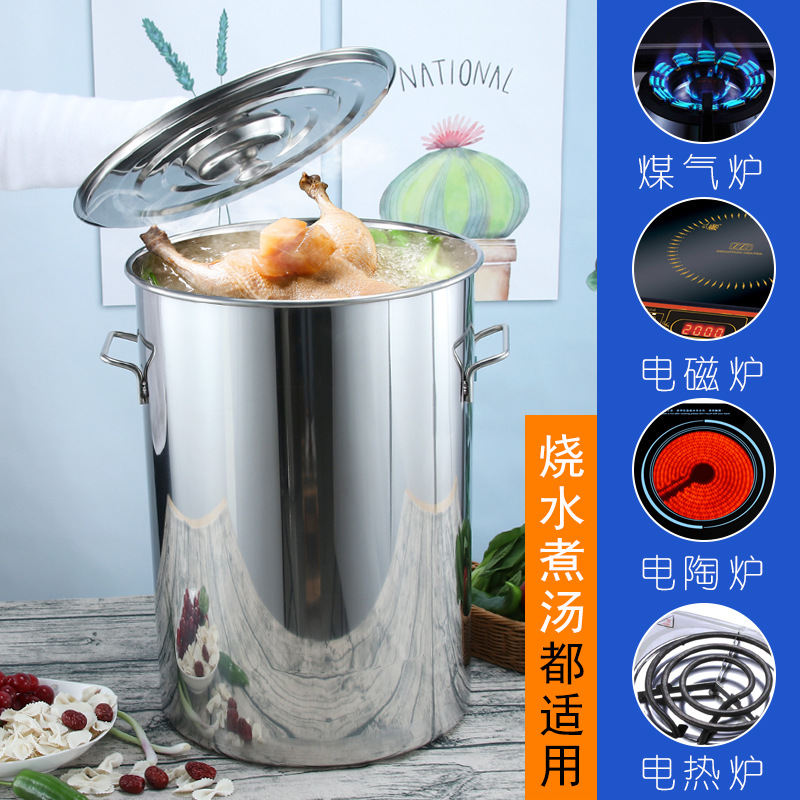 T9J5 دلو من الفولاذ المقاوم للصدأ مخصص 304 دلو أرز عالي الجسم مع غطاء دلو مستدير دلو سميك وعاء الحساء دلو عصيدة بالجملة