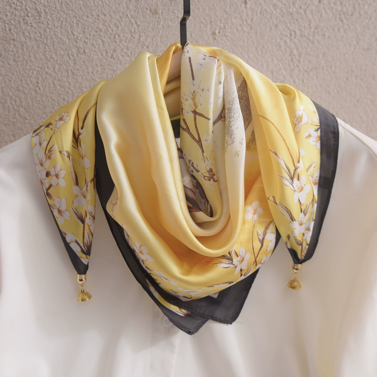 الساتان ربيع الربيع والخريف والشتاء وشاح مشبك داكن