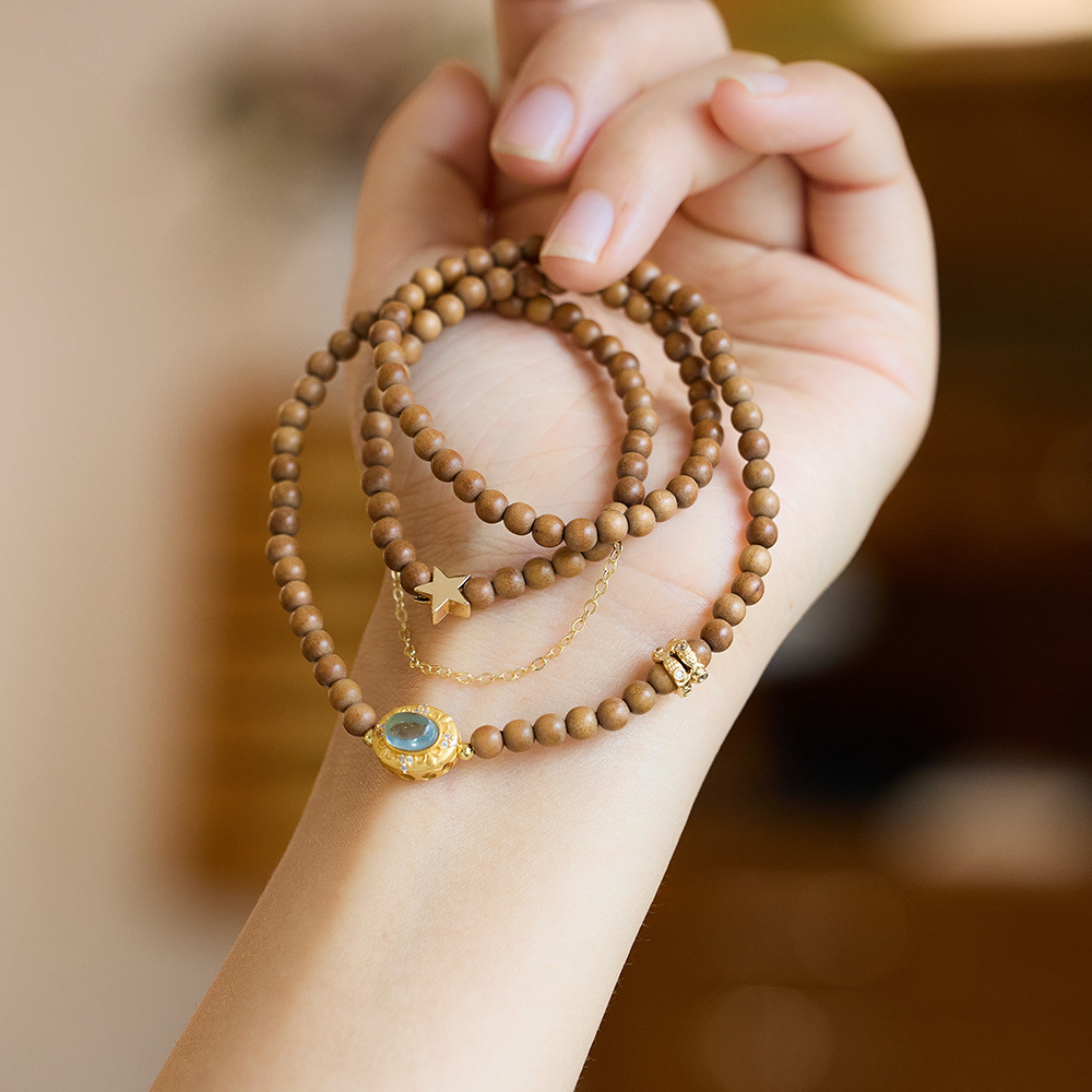 جديد النمط الصيني الغريبة الأميرة الطبيعية 4 مللي متر الهندي القديم خشب الصندل سوار الإناث الزبرجد نجمة القمر مكدسة سوار بالجملة