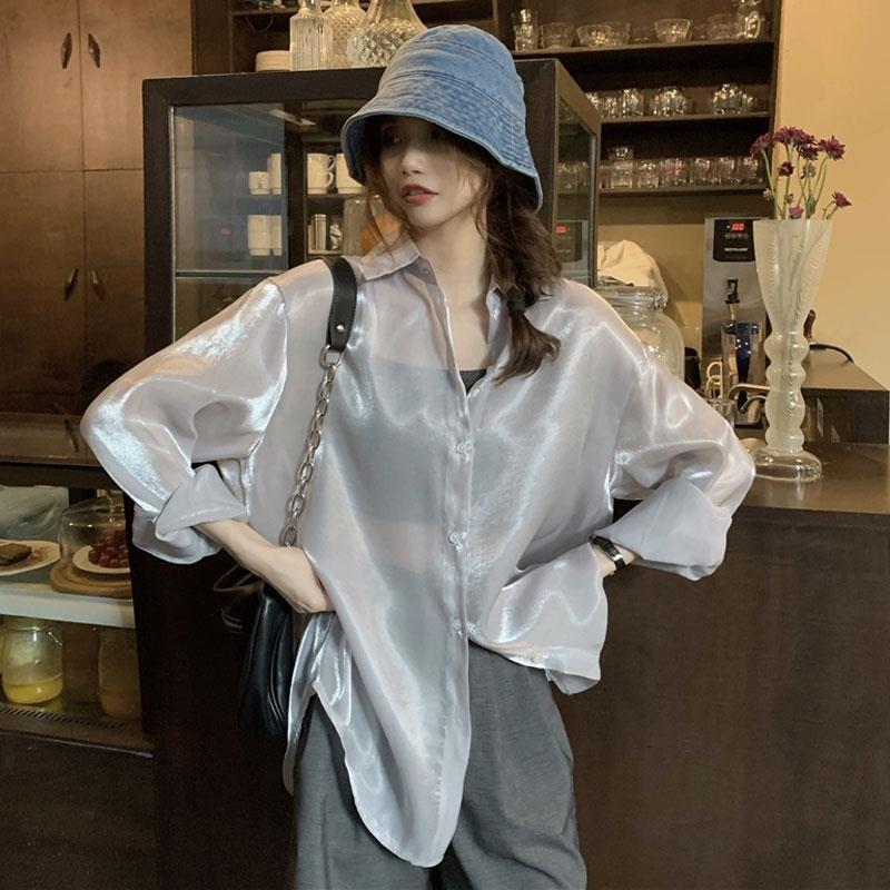 سترة شيفون حريرية رفيعة ومشرقة جديدة لصيف 2024 بأكمام طويلة واقية من الشمس للسيدات قابلة للتنفس للأشعة فوق البنفسجية