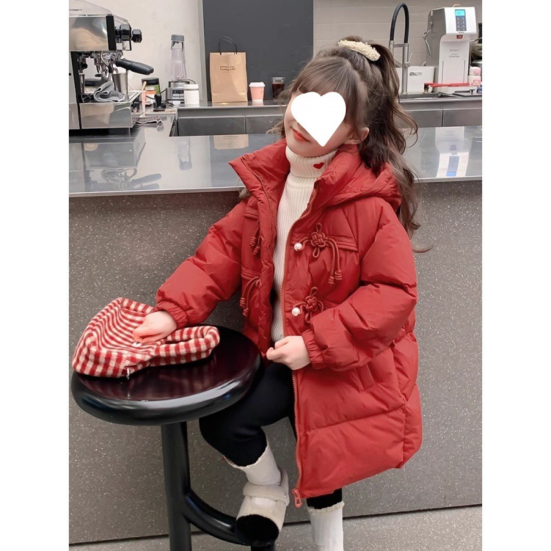 ملابس الفتيات المحشوة بالقطن ملابس الشتاء 2024 معطف أحمر جديد للأطفال سميك شتاء رأس السنة الجديدة ملابس تحية متوسطة وكبيرة للأطفال ملابس مبطنة بالقطن