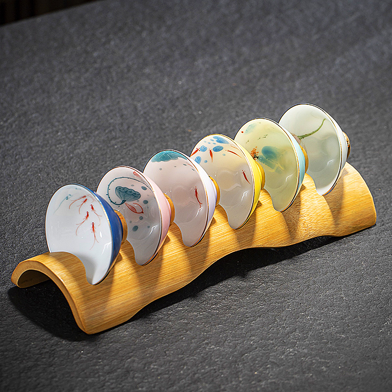 X70T رسمت باليد فنجان شاي السيراميك كوب بوجا الخزف الأبيض فنجان شاي صغير 6 مجموعات طقم شاي الكونغ فو قائمة كأس رئيسية