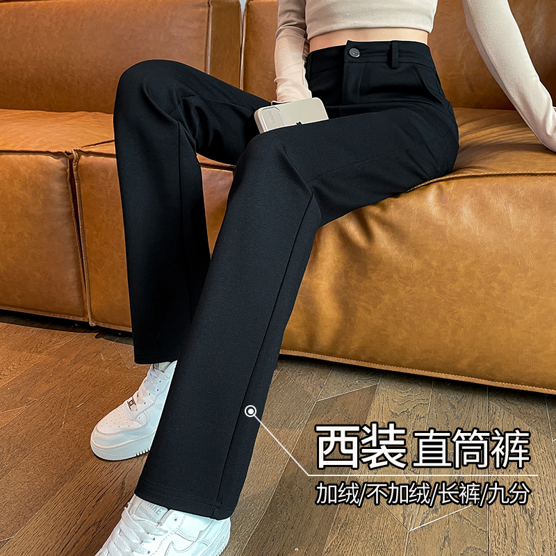 ضيق مستقيم السراويل النسائية عالية الخصر التخسيس الربيع والخريف 2023 جديد المرأة السراويل المبطنة الصوف الخريف والشتاء بدلة غير رسمية السراويل النسائية
