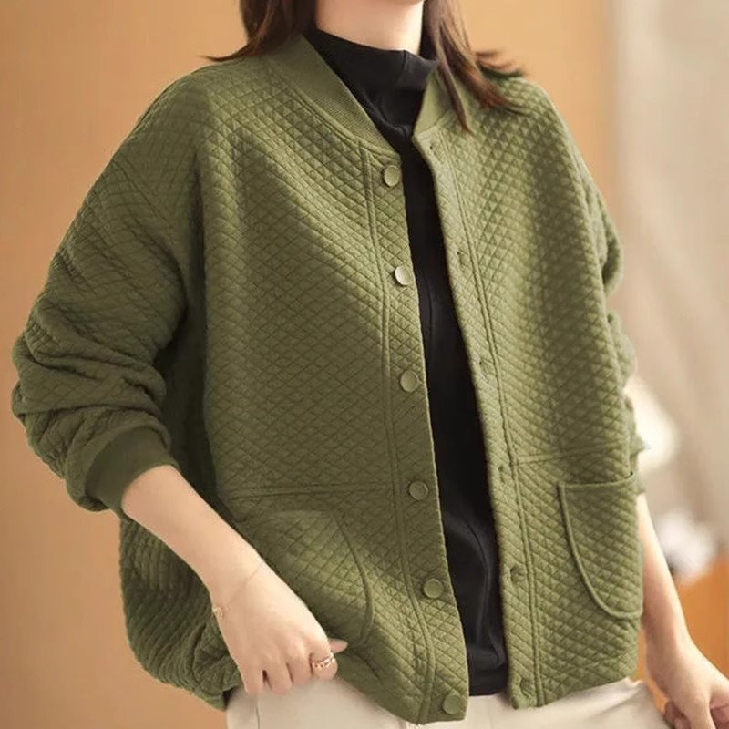 تسرب التسرب ~ سترة بيسبول المعينية للسيدات للخريف والشتاء فضفاضة ذات ياقة واقفة كاجوال وسترة صوفية