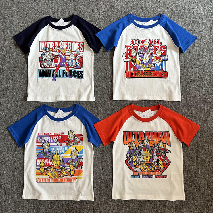 التجارة الخارجية اليابانية ملابس أطفال الكرتون الكرتون اللون مطابقة الأكمام معجون الماء المطبوعة الأطفال قصيرة الأكمام تي شيرت