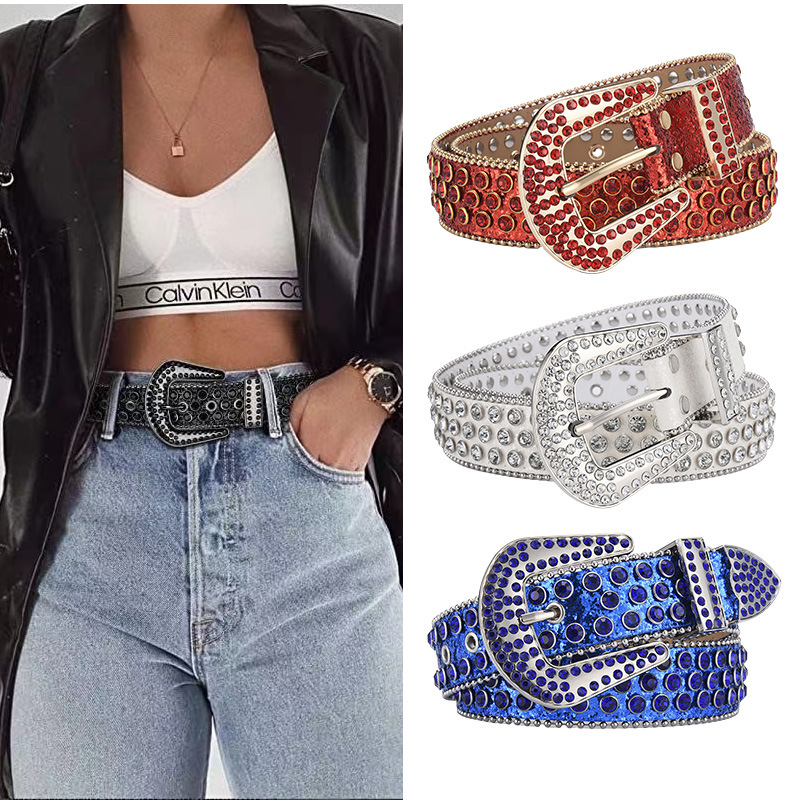 المتفجرة حجر الراين اللون الماس الترتر التوابل الفتيات Ins حزام المرأة اكسسوارات Y2K الاكريليك حزام البنطال الجينز عبر الحدود الشعر