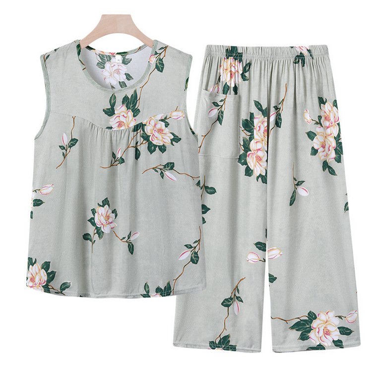 الجدة الصيف القطن الحرير بلا أكمام سترة منامة قطعتين مجموعة ل منتصف العمر وكبار السن ملابس الأم الصيف ملابس المنزل تناسب النساء
