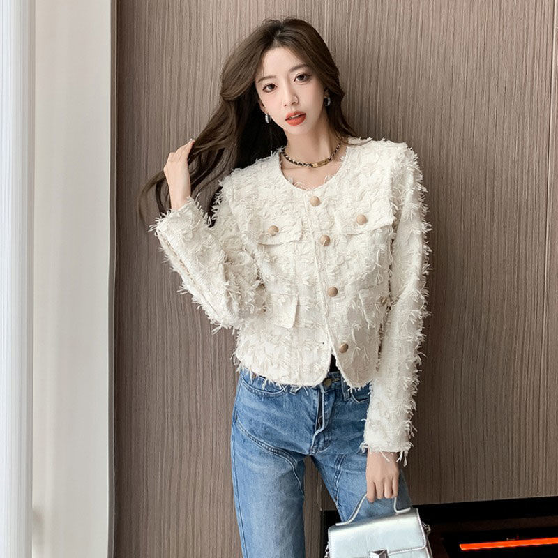 معطف نسائي صغير معطر من Ws أوائل الخريف، طبقة اجتماعية جديدة بمزاج من الدرجة العالية، قميص فرنسي مشهور وجميل هذا العام