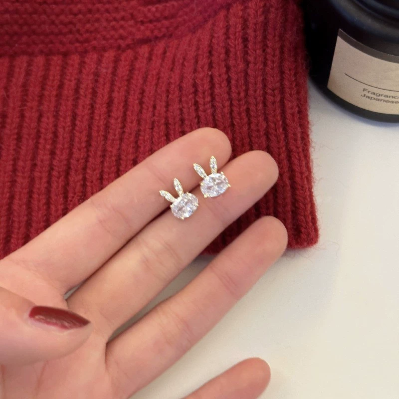 أقراط أرنب صغيرة فاخرة وخفيفة الوزن للفتيات بإبر فضية