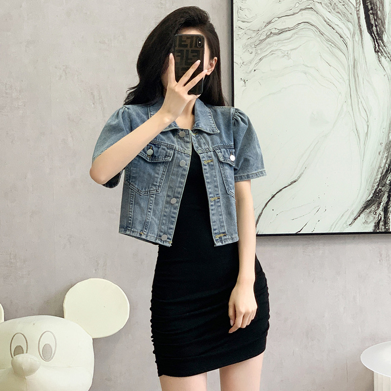معطف من قماش الدنيم بأكمام قصيرة بتصميم كلاسيكي من شانيل بأكمام قصيرة من Real Shot، قميص صيفي قصير وقميص صغير
