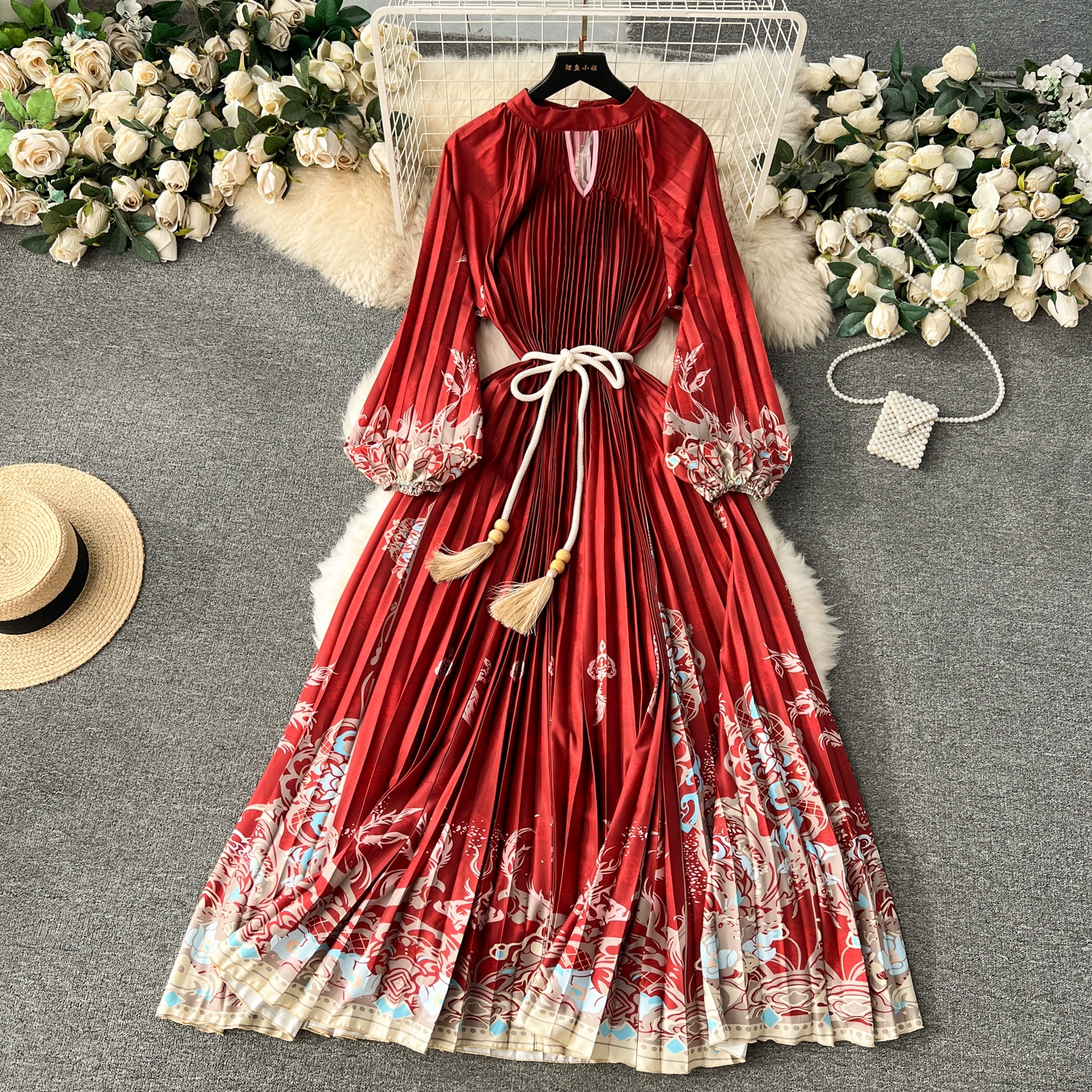 أوروبي وأمريكي طويل الثقيل الثقيل الثقيل الثقيل فستان الربيع الطي