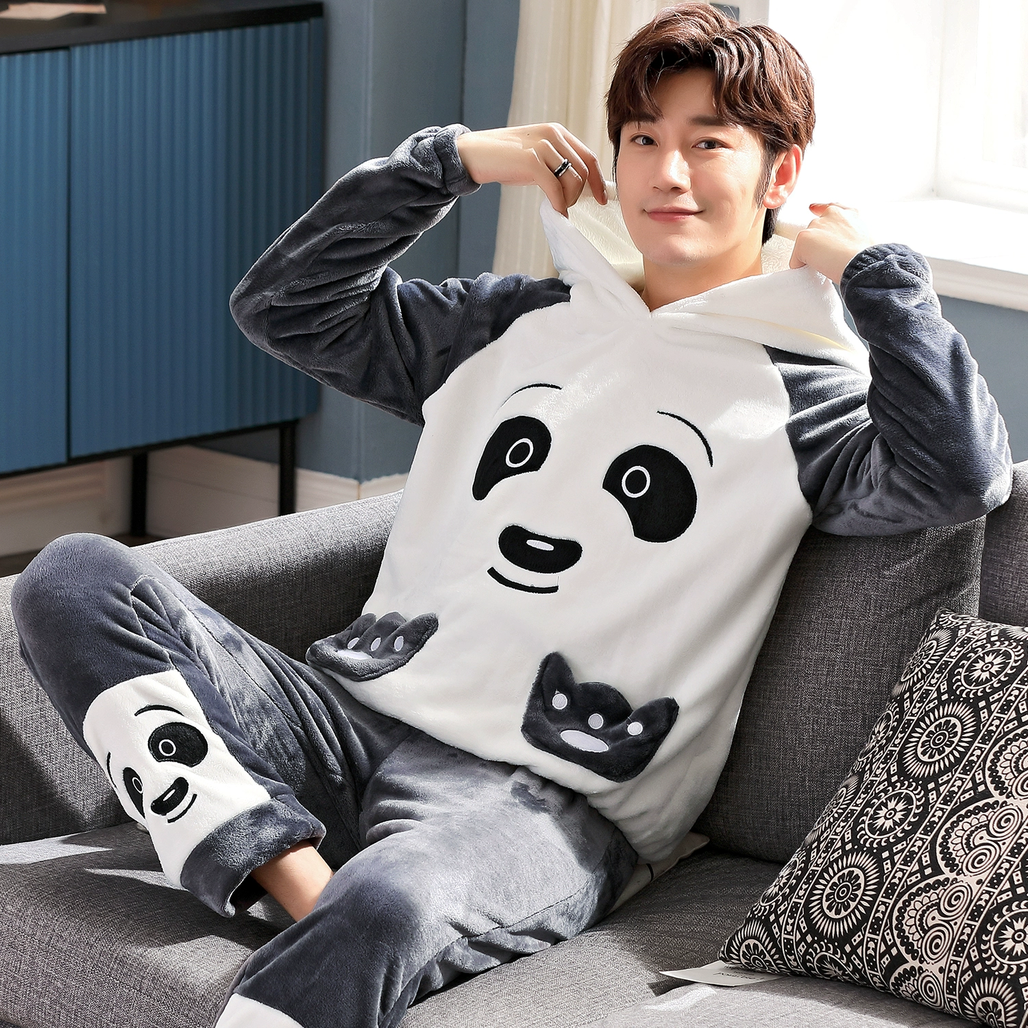 الشتاء سميكة المخملية الدافئة المرجان المخملية منامة الرجال الخريف والشتاء الكرتون المراهقين والطلاب ملابس منزلية كبيرة الحجم