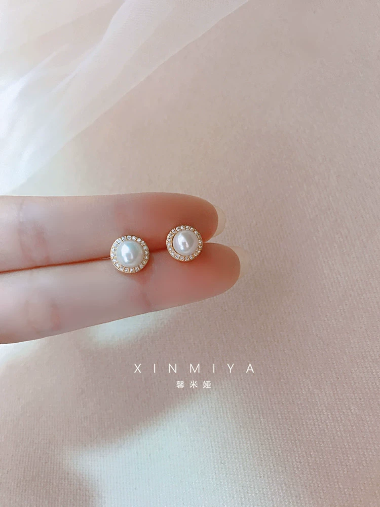 تصميمات صغيرة لؤلؤة الفضة النقية ذات الأقراط
