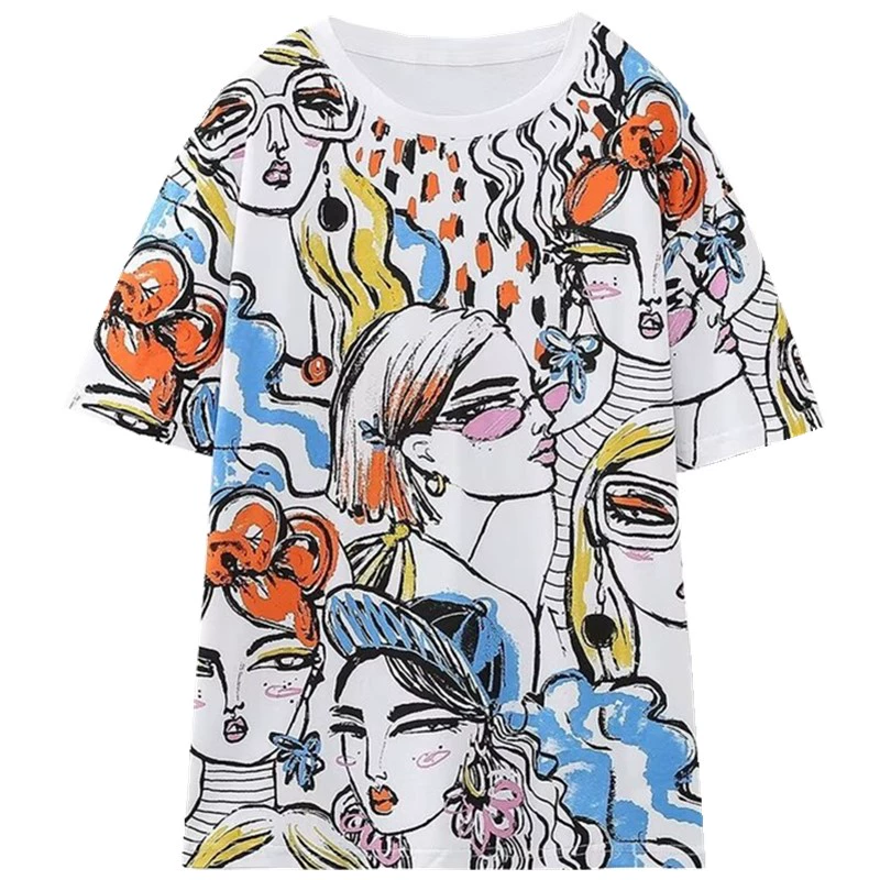 تي شيرتات نسائية مطبوعة فضفاضة ومتعددة الاستخدامات للخريف الجديد
