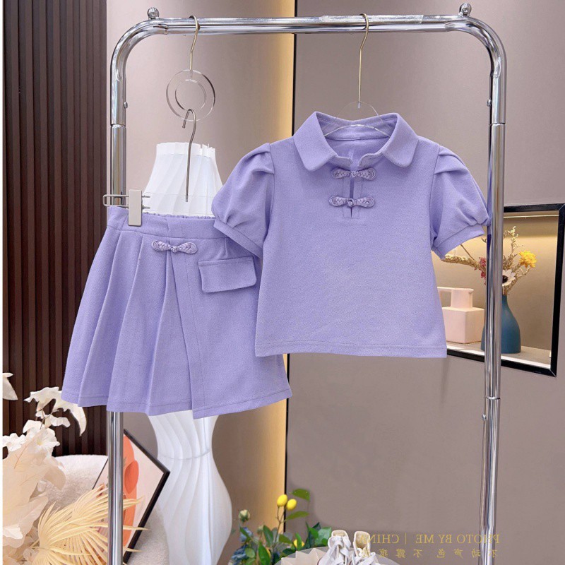 ثلاثة عشر سطرًا من بدلة الصيف للفتيات 2024 الجديدة على الطراز الصيني على الطراز الغربي شبكة شعبية بأكمام قصيرة للولائم البناتية وياقة الأطفال قطعتين