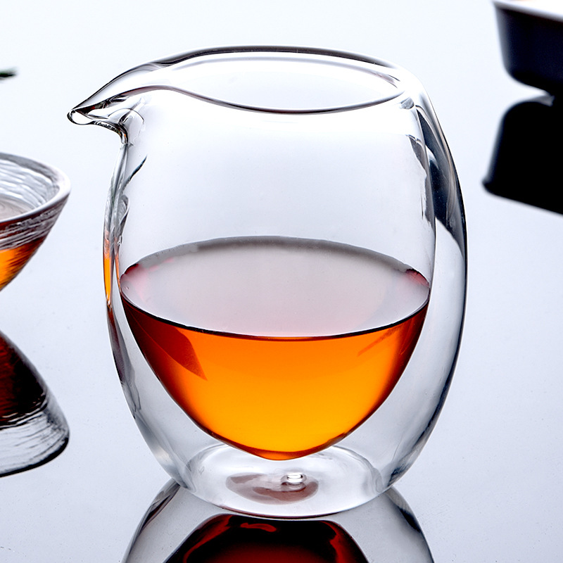 النمط الصيني الزجاج الشفاف طبقة مزدوجة مجاملة كوب المنزلية معزول كوب عام طقم شاي الكونغ فو إبريق شاي صغير صب فنجان شاي حفل الشاي