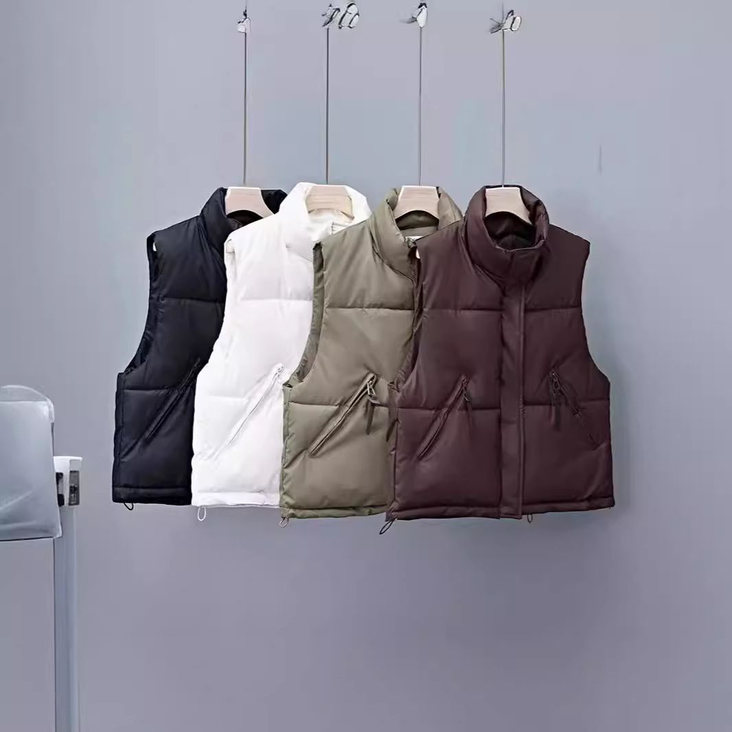 مشبك حصان قطني نسائي قصير بلون سادة على الطراز الكوري بياقة عمودية سترة قطنية فضفاضة صدرية قطنية بدون أكمام سترة قطنية عصرية للتجارة الخارجية