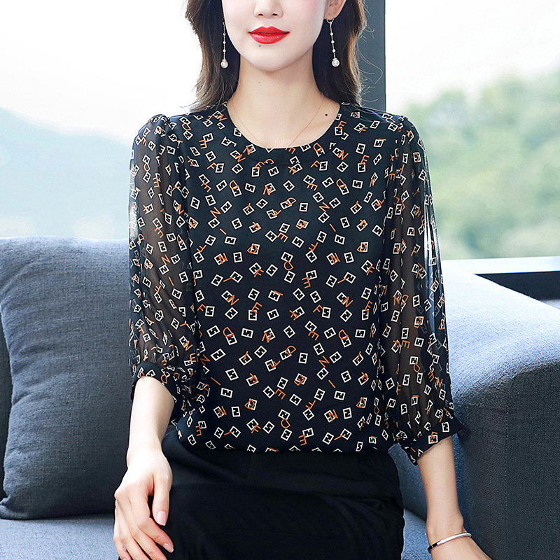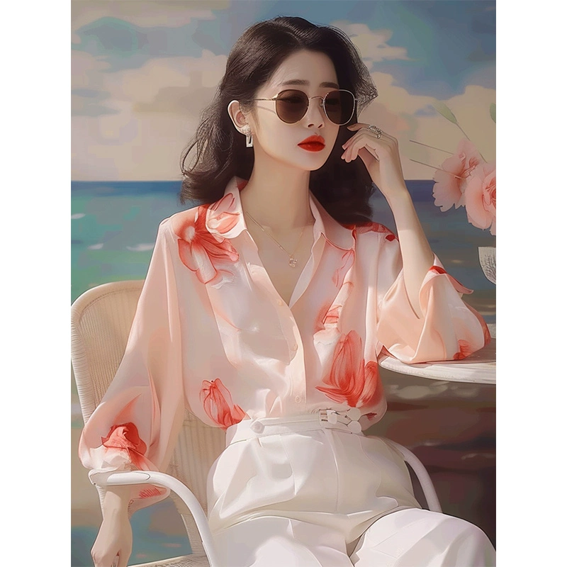 قميص مزين بالزهور للنساء لربيع وصيف 2024 بتصميم جديد للتجارة الخارجية عبر الحدود متعدد الاستخدامات غير رسمي فضفاض للتخسيس يغطي البطن