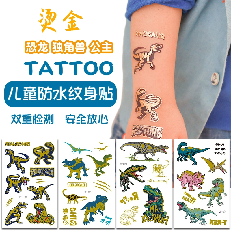 ملصقات وشم للأطفال على شكل ديناصور رسوم متحركة ذهبية ساخنة، رسوم متحركة، فتاة ذكر، طفلة مقاومة للماء ملصق طباعة مياه التنين المستبد على شكل حيوان