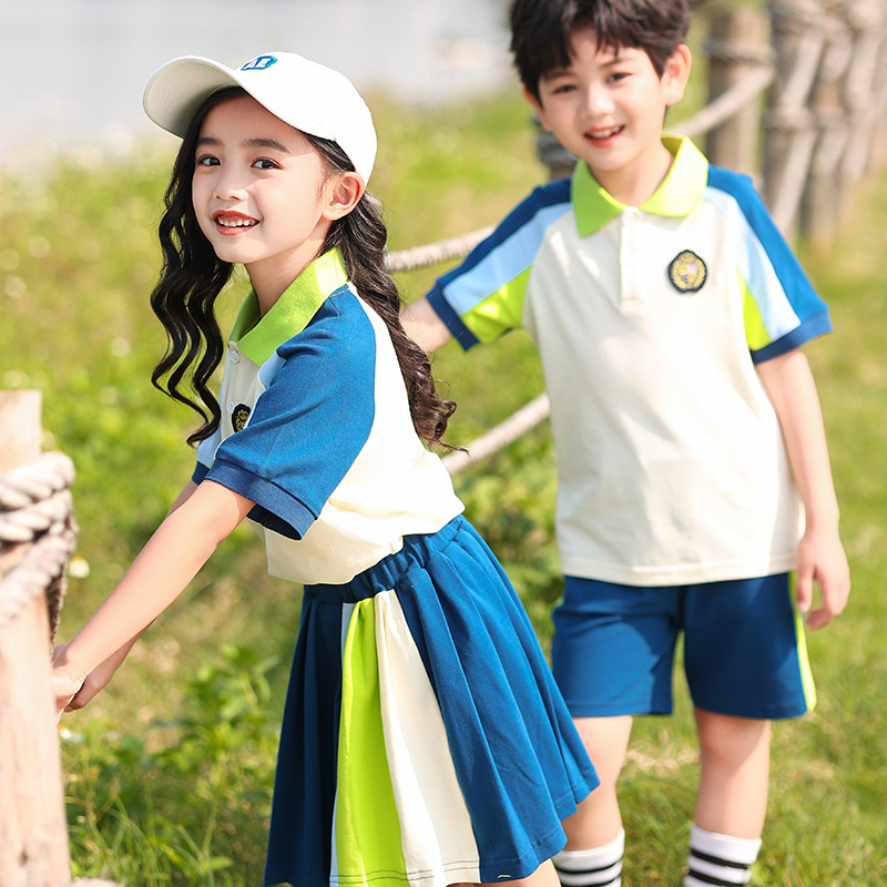بدلة طلاب المدارس الابتدائية ملابس صيفية موحدة للأطفال ملابس على طراز الكلية ملابس من ثلاث قطع ملابس رياض الأطفال للحديقة
