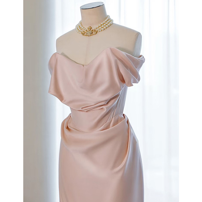 ثوب مسائي على الكتف بتصميم فرنسي على طراز الإمبراطورة الغربية هيبورن من الساتان صباح ثوب العروس وحفل زفاف ترحيب نخب