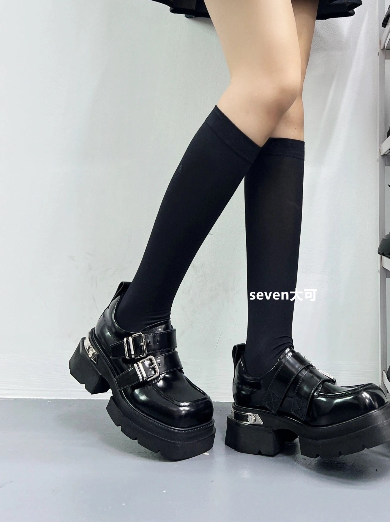 حذاء جلد فرنسي خريفي أسود بنعل سميك