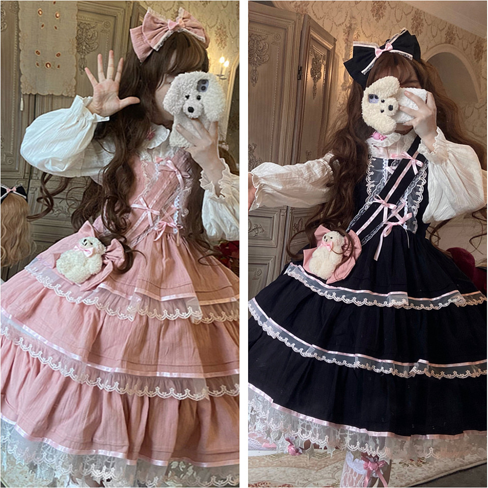 Doujiang الأصلي لوليتا الشريط الدب متعدد الطبقات تنورة كعكة الدانتيل jsk فستان جاكار لطيف