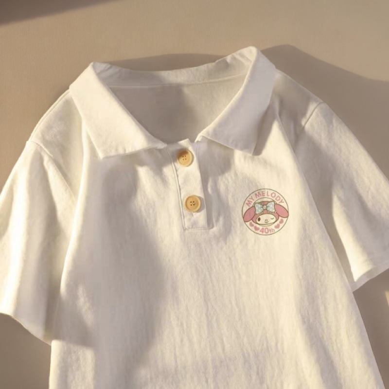تي شيرت صيفي فضفاض بأكمام قصيرة مطبوع على الكتف الأيمن لتقليل العمر