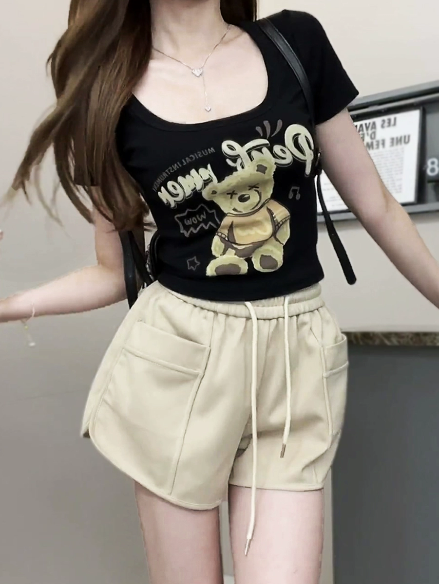 تي شيرت بتصميم صيفي جديد مطبوع 2024 بقصة ضيقة