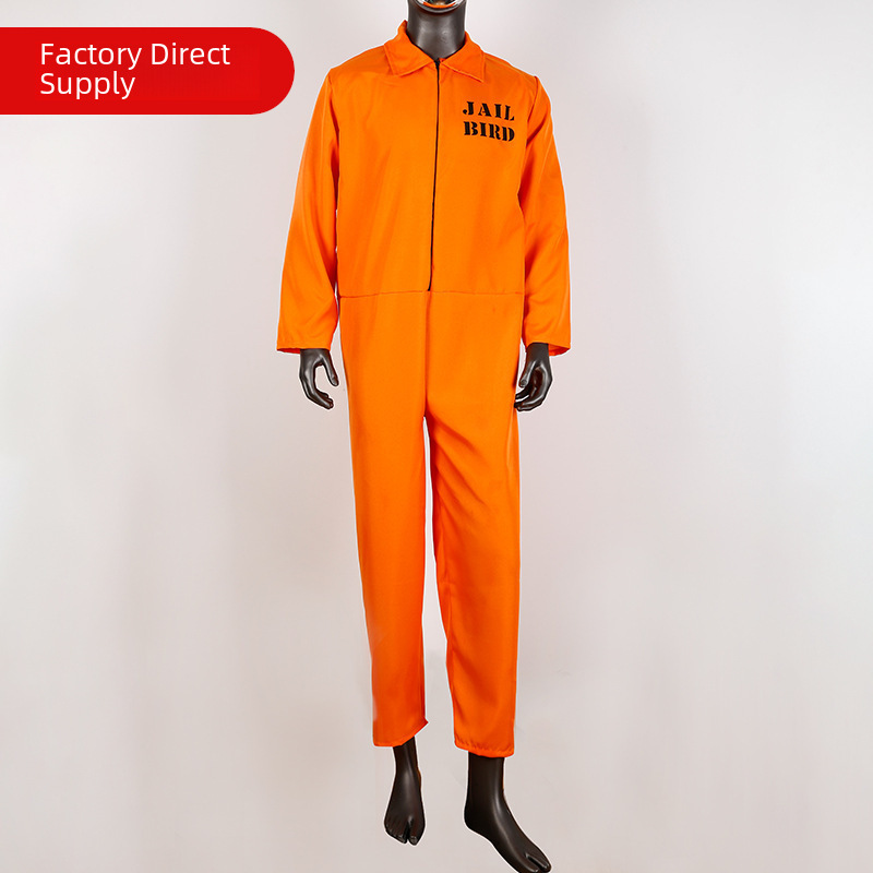ملابس سجين جديدة أوروبية وأمريكية لعام 2020 ملابس سجين برتقالية عبر الحدود للهالوين للرجال البالغين أزياء تنكرية