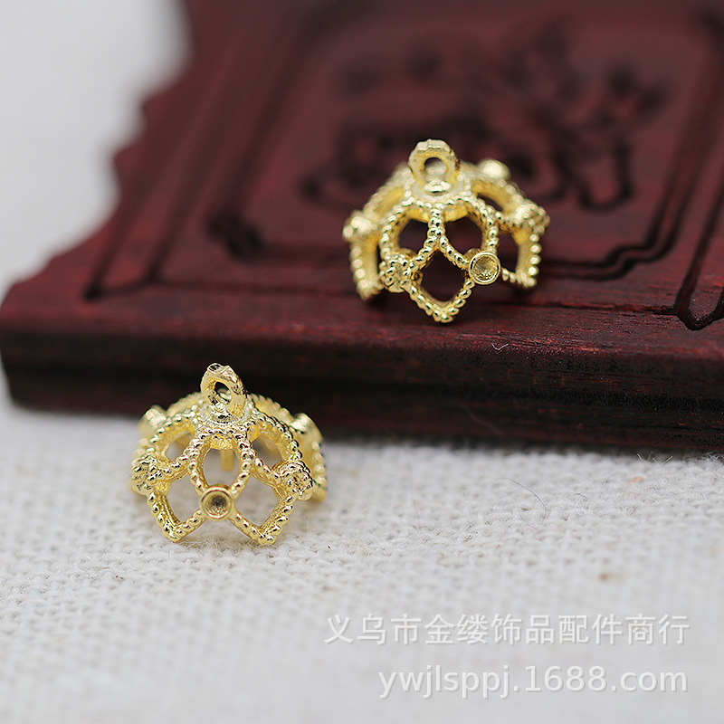 ييوو الذهب راي مطلية بالذهب النحاس النقي اللون لتقوم بها بنفسك غطاء حبة جوفاء حبة حامل اللؤلؤ كريستال قاعدة قلادة الملحقات B1944