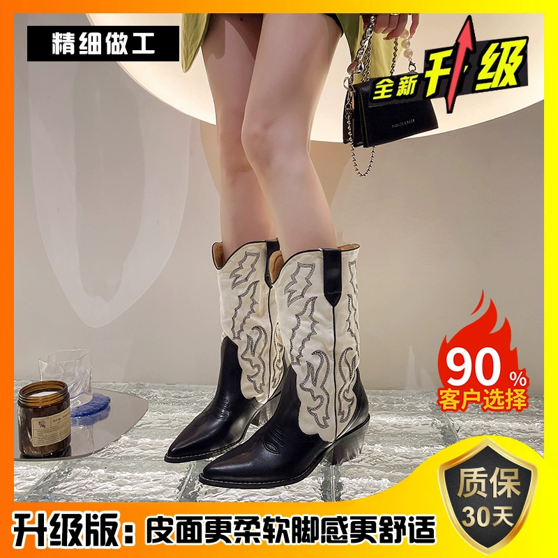 الخريف الكعب الكثيف المطرز بألوان الحظر العتيقة أحذية الدنيم الغربية