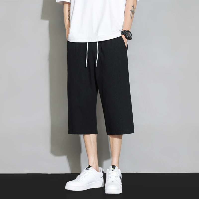 سراويل خطية -سروال الصيف رفيع الصيف سراويل زائفة على التوالي القطن الصيني للرياح والكتان 7 -السراويل السراويل غير الرسمية
